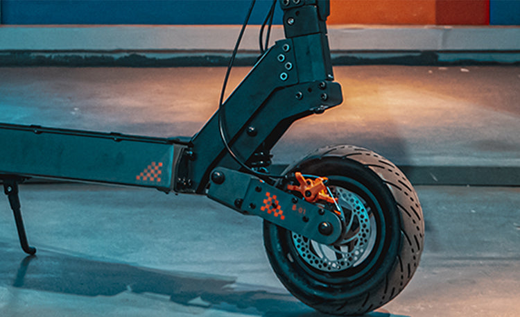 A - Phare avant B - Clamp pliable C - Amortisseur avant D - Pneu 90mm